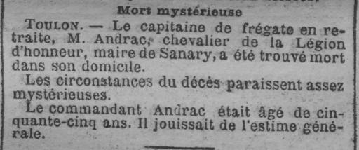 Né le 2 mai 1844 à SANARY sur MER (Var) - Décédé le 5 septembre 1899