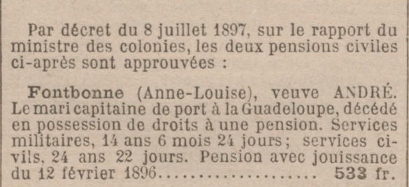 mentionnée veuve en 1897 sur le journal officiel du 23 août 1897