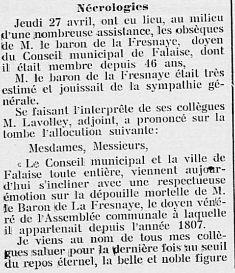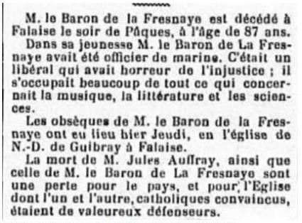 Né le 16 février 1829 à FALAISE (Orne) - Décédé le 22 avril 1916 à FALAISE (Orne)