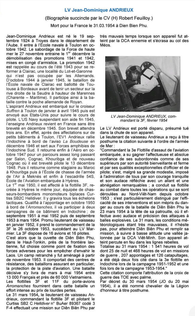 vaisseau Andrieux a reçu à titre posthume la citation suivante à