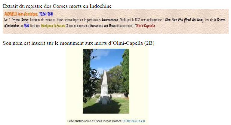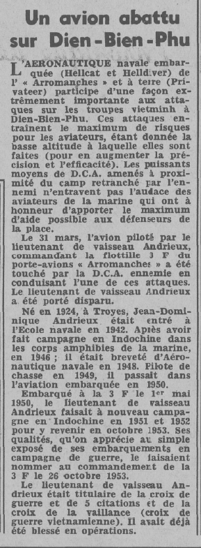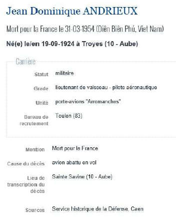 - Décédé le 31 mars 1954 au Nord Vietnam