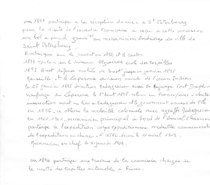 Mécanicien de 1ère classe le 11 janvier 1894.
