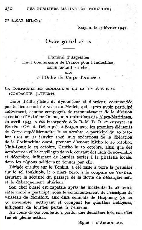 Dans la journée est diffusé l’ordre n° 1 signé du CA d’Argenlieu