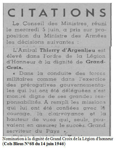 Le 5 mars 1947, Vice-président du Conseil supérieur de la Marine et inspecteur