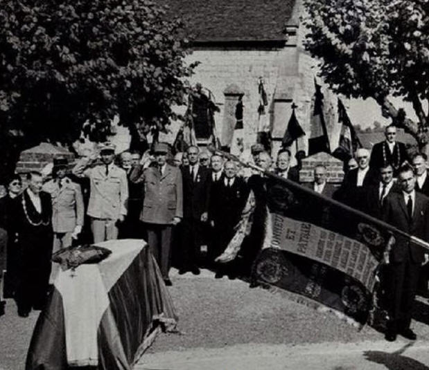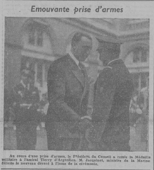 Avec le ministre de la Marine, Louis Jacquinot, devant l'ancienne