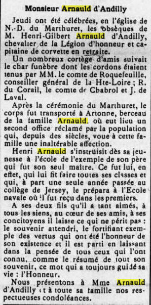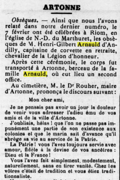 ARTONNE (Puy-de-Dôme) - Décédé le 5 février 1929.