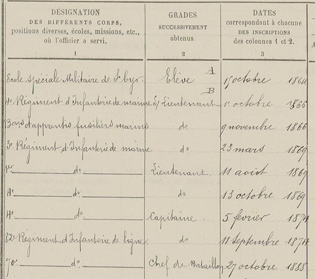 effectifs 1875, poursuit sa carrière dans l'Infanterie.