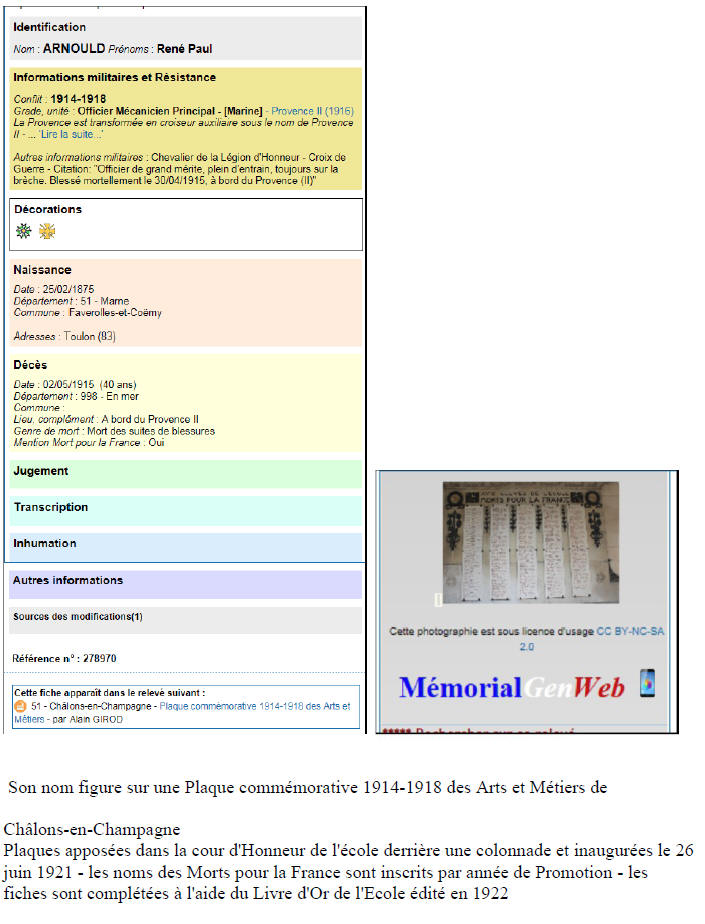 Cet Officier décède sur le croiseur auxiliaire "PROVENCE-II" des