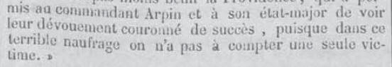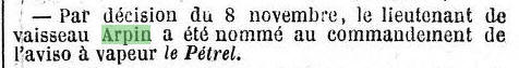 lieutenant de vaisseau Arpin a reçu un témoignage de satisfaction du