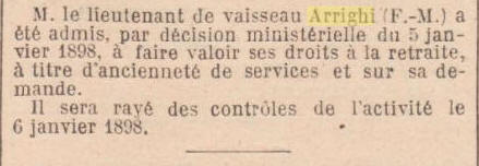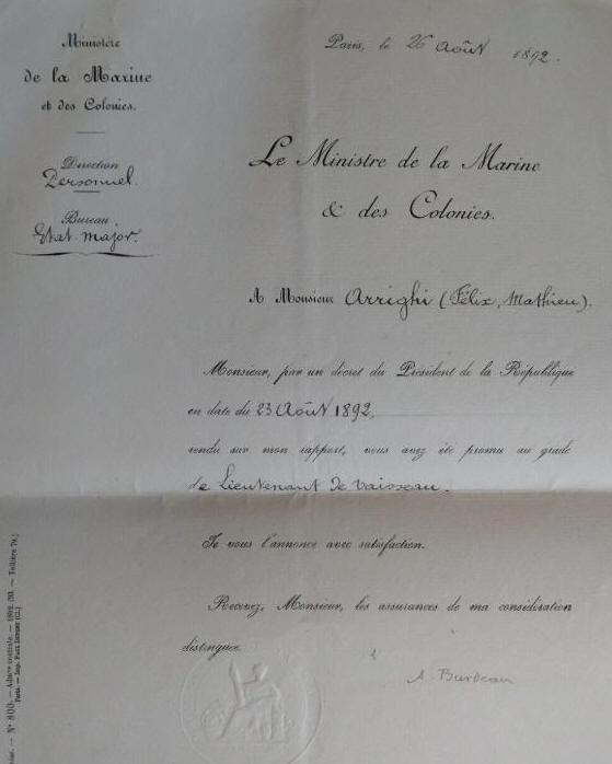 24 novembre 1885 étant Premier Maître de mousqueterie.