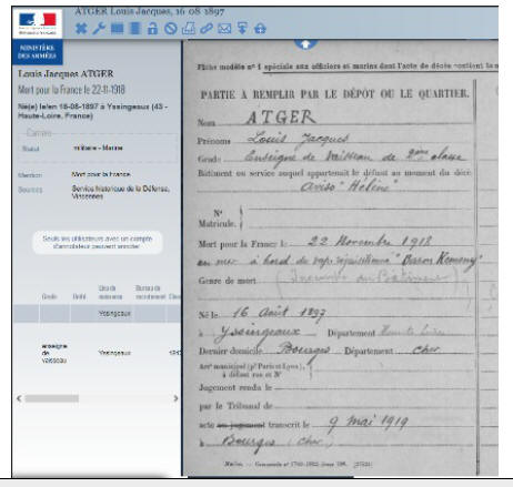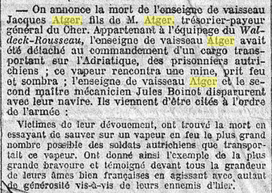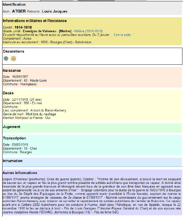(Haute-Loire) - Décédé le 22 novembre 1918 en mer, vers SPLIT