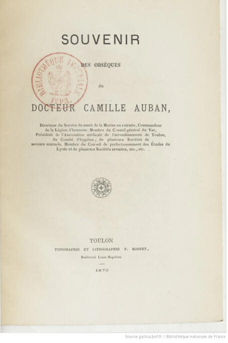 Pharo. Souvenir des obsèques du Docteur Camille Alban, BNF