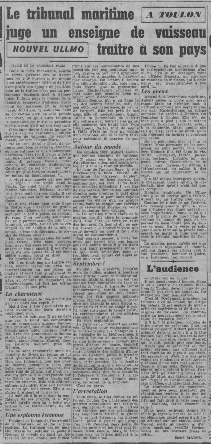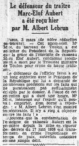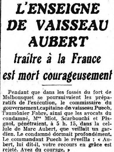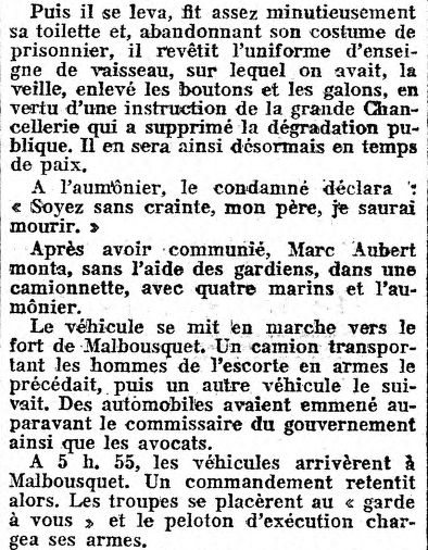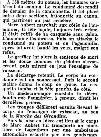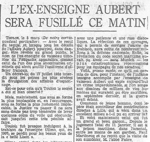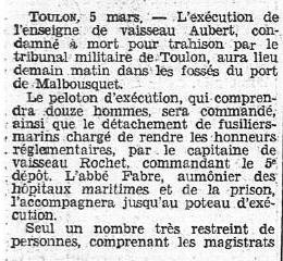 cet officier de marine fut fusillé à Toulon, le 6 mars 1939, pour