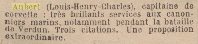 Cité à l'ordre de la place de Verdun pour l'efficacité des résultats