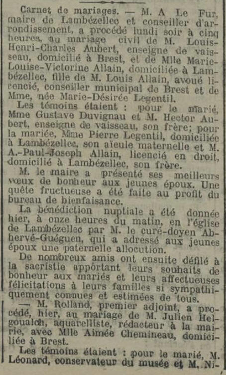 à LAMBEZELLEC (Finistère, aujourd'hui quartier de Brest) avec Marie