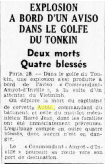 commandant, le capitaine de corvette Aubin trouve la mort.