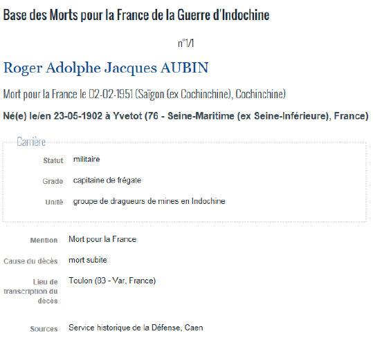 (Seine-Maritime) - Décédé le 2 février 1951 à SAÏGON (Vietnam)