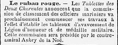octobre 1896, Chef du Cabinet militaire du Ministre de la Marine.
