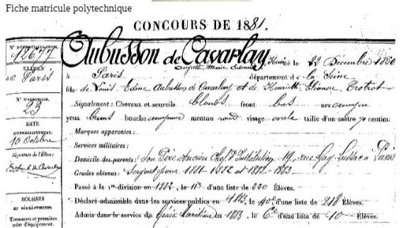 Élève de l'École polytechnique le 1er novembre 1881, opte pour le