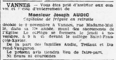 Atlantique) - Décédé le 2 novembre 1920 à VANNES (Morbihan)