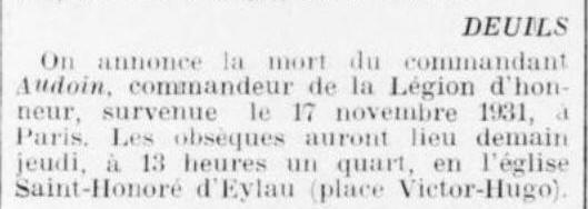 à MOUTHIERS-sur-BOËME (Charente) - Décédé le 17 novembre 1931 à