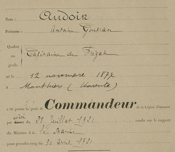 (Cdts Isaac LACOURNÉ puis Augustin LE DÔ).