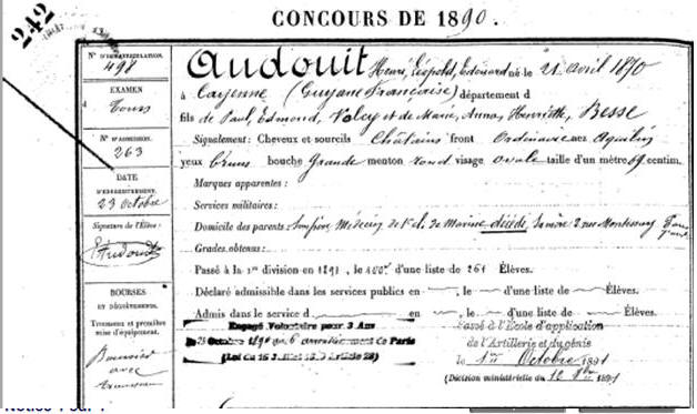 Sous-Lieutenant d'Artillerie de Marine le 30 septembre 1892.