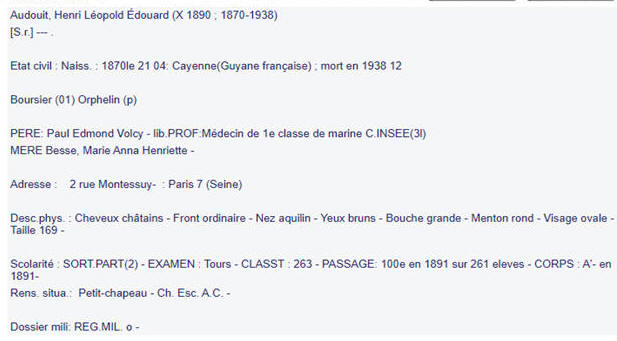 Né le 21 avril 1870 à CAYENNE, GUYANE Française - Décédé le 16