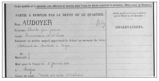 (Charente) - Décédé le 6 janvier 1918 à SAÏGON, VIET-NAM.