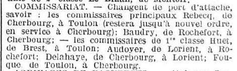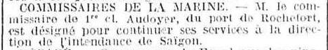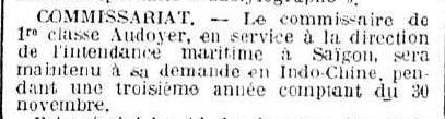 service à SAÏGON. Commissaire de 1ère classe le 15 avril 1912.