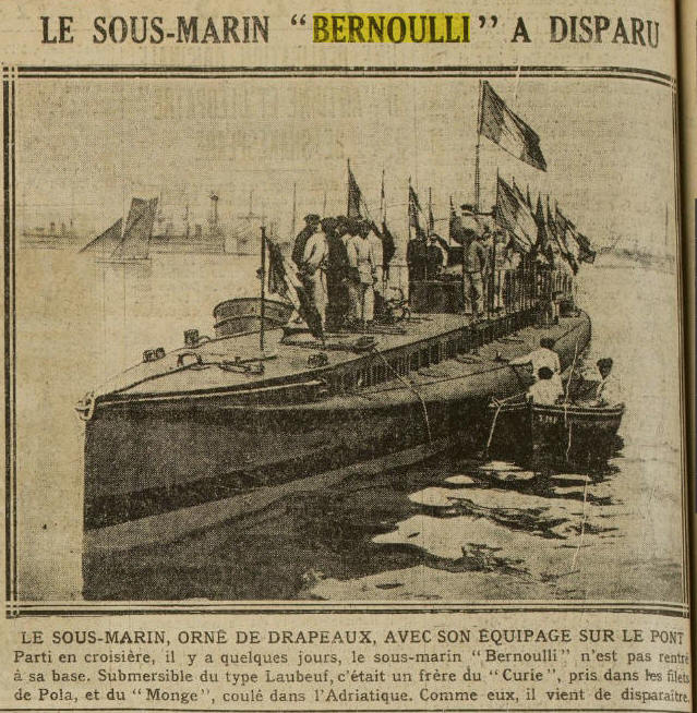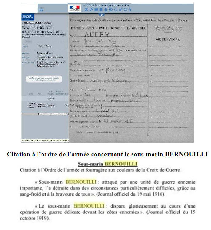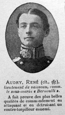 Commandant le sous-marin "BERNOULLI", il est cité à l'ordre de
