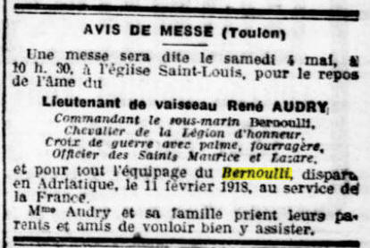 disparaît avec le bâtiment perdu au large des Bouches de CATTARO et