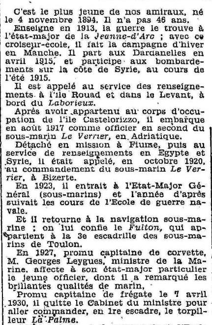 en Méditerranée. Capitaine de corvette en janvier 1927, il avait été