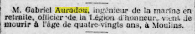 Fils de Joseph Radis Auradou, chef de musique au troisième régiment