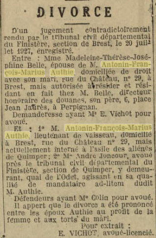 Maritime) avec Madeleine Thérèse Joséphine BELLE, divorce le 20