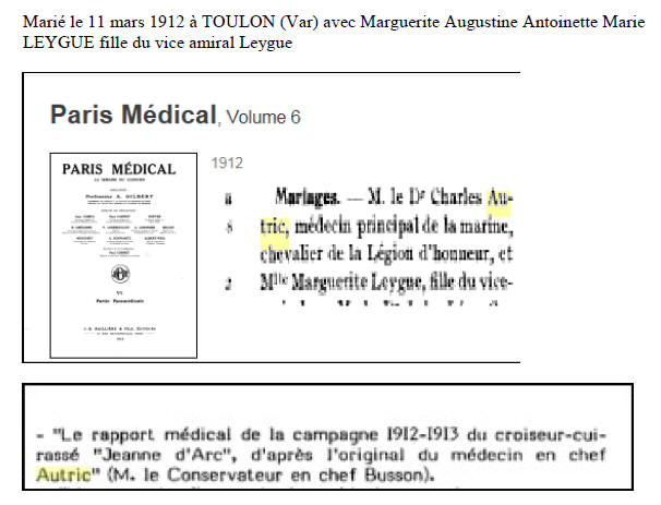 TOULON (Var) avec Marguerite Augustine Antoinette Marie LEYGUE.