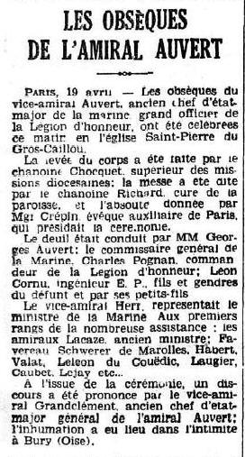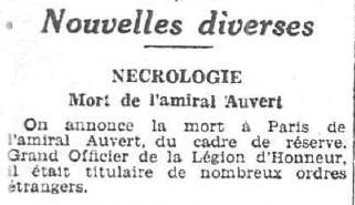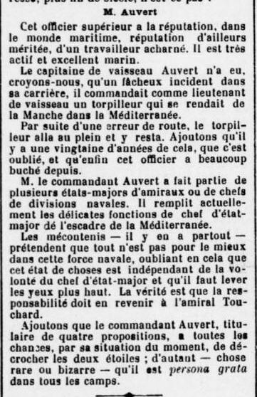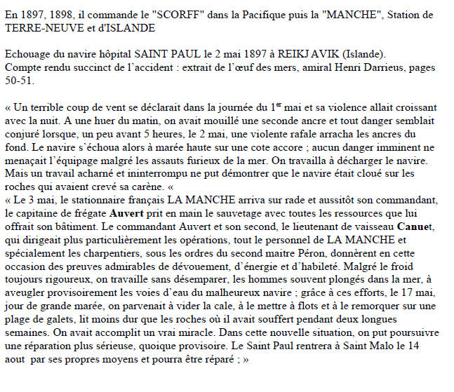 1911, auprès du Vice-Amiral Marie AUBERT, Commandant en chef;