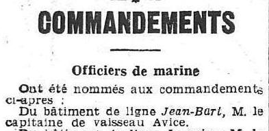 1918. Le 3 janvier 1920, Commandant la 7ème Escadrille de dragage du