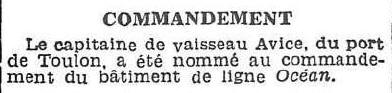 1912, sur le cuirassé "BOUVET", Aide de camp auprès du Vice-amiral