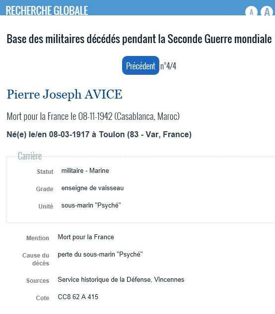 Né le 8 mars 1917 à TOULON - Tué le 8