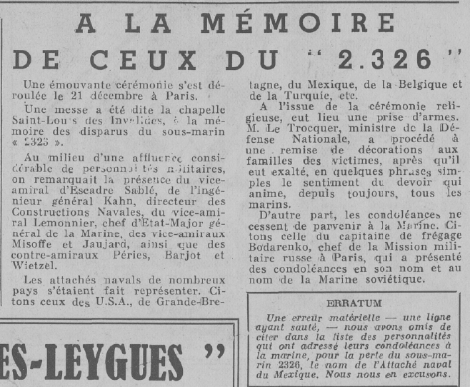 A été promu capitaine de corvette à titre posthume pour compter du 4