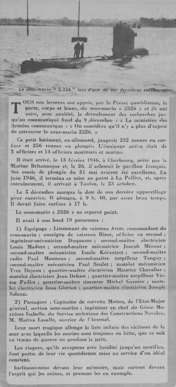 décembre 1946 en mer Méditerranée, au large de TOULON (Var)