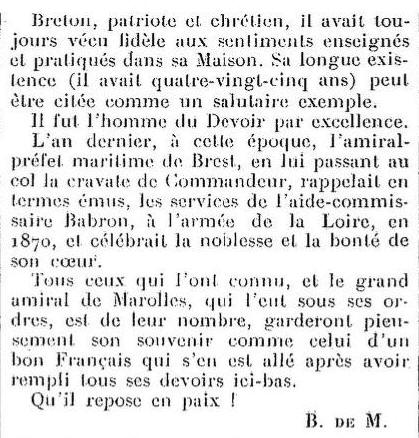 (Côtes-d'Armor). Décédé le 14 décembre 1888 - Brest (Finistère) et