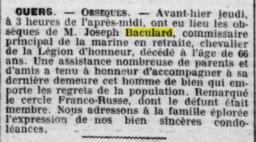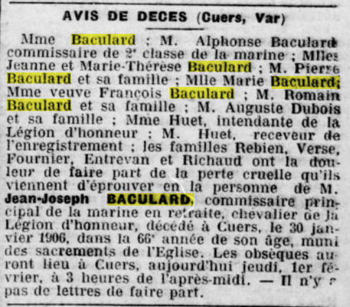 ROQUEMAURE (Gard) - Décédé le 30 janvier 1906 à CUERS (Var).
