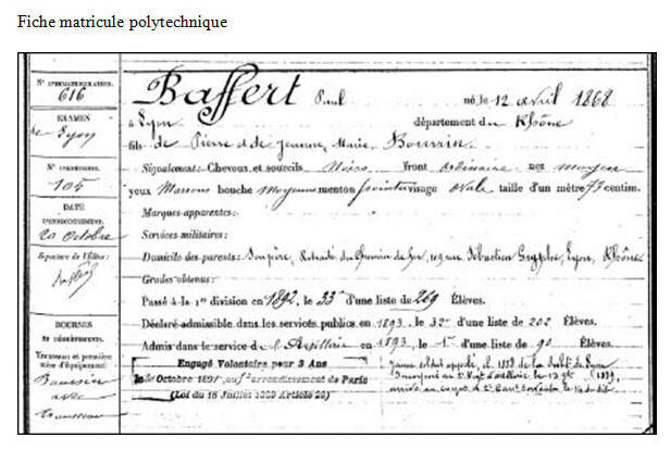 Fils de Pierre BAFFERT, retraité, et de Jeanne Marie BOURRIN