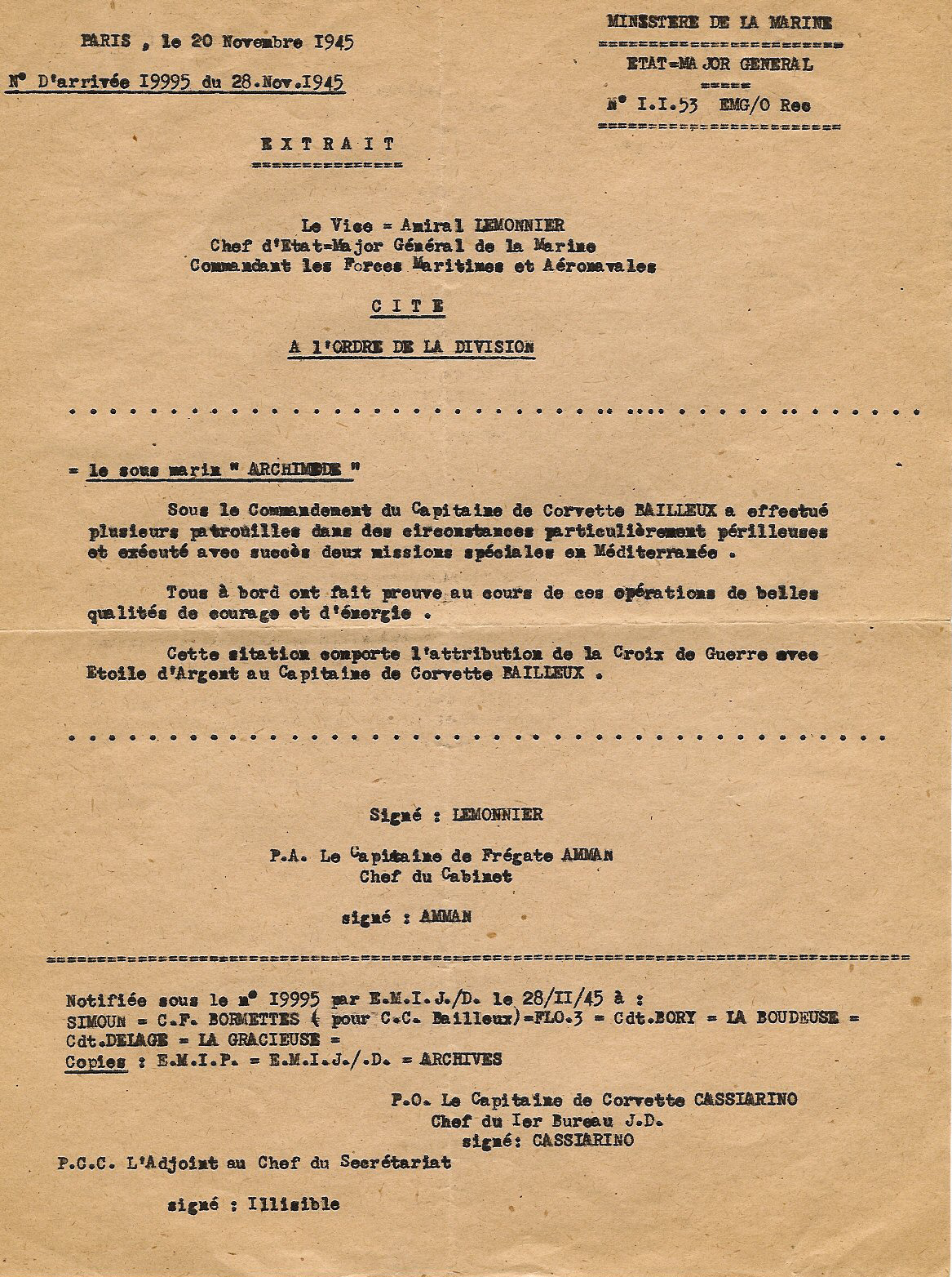 Capitaine de corvette, Commandant du sous-marin "ARCHIMEDE"