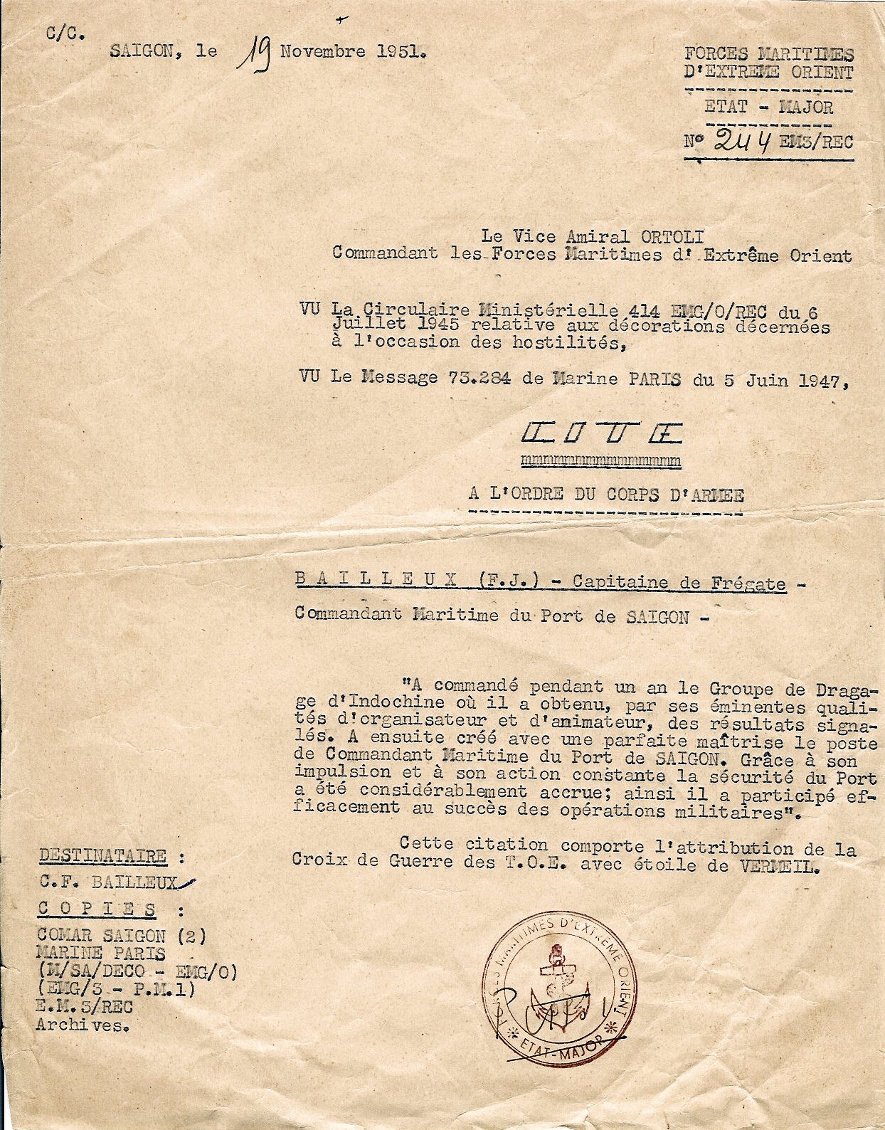 par le Capitaine de Vaisseau Albert Joire-Noulens, Cdt de l’’École