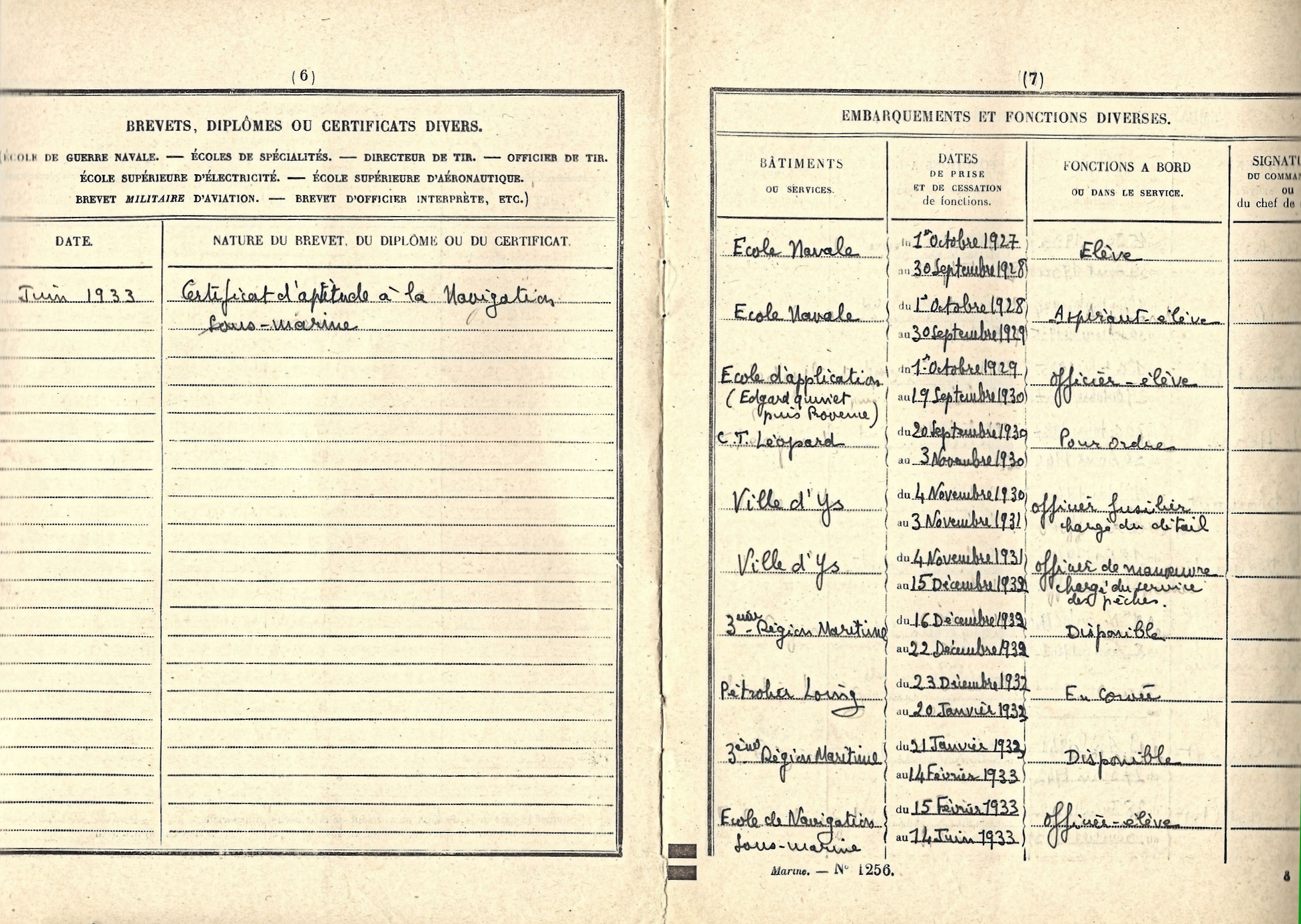 Entre à l'Ecole navale en 1927