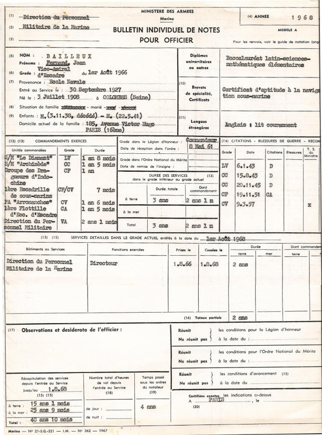 directeur du Personnel Militaire de la Marine (11 juillet 1964 – 11