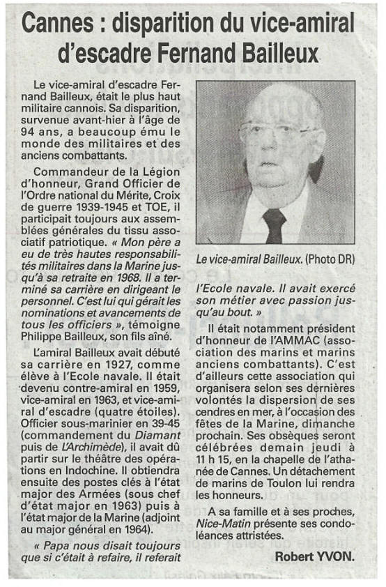 AMMAC Cannes Pays de Lérins Vice-Amiral D’Escadre Bailleux Fernand